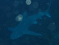 Visite surprise d'un squale que nous ne sommes pas habitués à voir dans la région de Nouméa : deux "requins à haute dorsale" (Carcharhinus plombeus) environ deux mètres de long, l'un deux avec l'extrémité de la nageoire dorsale coupée. Le premier semble affectionner Gene, qui est subitement bien entouré, puis s'en va, laissant la place au suivant. André M. a l'excellent reflexe de faire une série de photos permettant une identification parfaite. La taille moyenne de ce requin est de 1,8 mètres, pouvant aller jusqu'à 3 mètres. Nous observerons un troisième specimen à l'occasion de la dernière plongée au Nord du Récif, côté Ouest (intérieur).